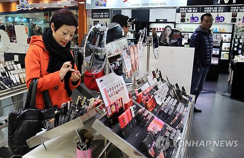 제주시 중앙지하상가의 한 코너에 마련된 화장품 매장에 18일 유커(遊客·중국인 관광객)들이 끊임없이 몰렸다.