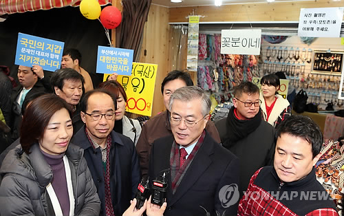 | △ 국제시장 방문한 문재인 대표 (부산=연합뉴스) 조정호 기자 = 새정치민주연합 문재인 대표가 설연휴 첫날인 18일 부산시 중구 국제시장 꽃분이네를 찾아 방문소감을 말하고 있다. 맨 왼쪽은 배재정 의원. |