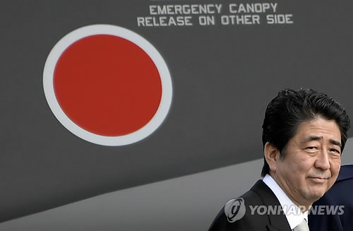 △ (EPA=연합뉴스 자료사진) 지난해 10월 일본 자위대 창설 60주년 기념행사에 참석한 아베 신조 일본 총리