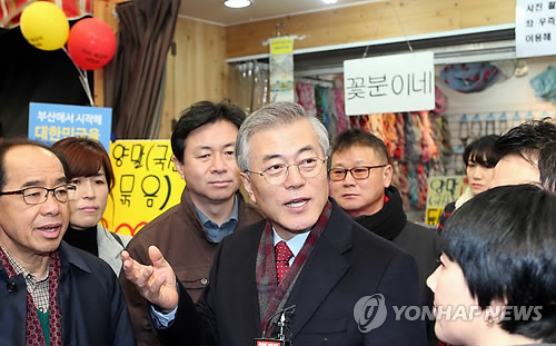 | △ 설연휴 국제시장 찾은 문재인 대표 (부산=연합뉴스) 조정호 기자 = 새정치민주연합 문재인 대표가 설연휴 첫날인 18일 부산시 중구 국제시장 꽃분이네를 찾아 상인들과 대화하고 있다. 2015.2.18 ccho@yna.co.kr |