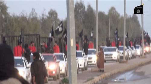 9분 정도 길이의 이 동영상에서 IS는 주황색 죄수복 차림의 인질을 한 명씩 가둔 철창을 IS의 깃발을 단 픽업트럭에 각각 실은 뒤 환호하는 군중 사이를 줄지어 운행한다.