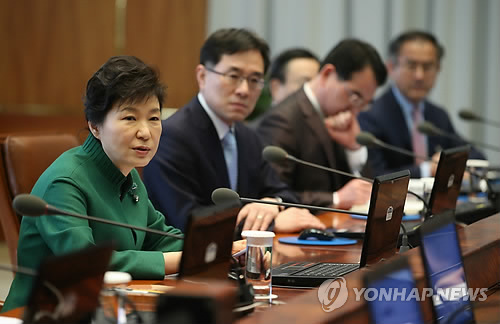 | △ 수석비서관회의 발언하는 박 대통령 (서울=연합뉴스) 도광환 기자 = 박근혜 대통령이 23일 오전 청와대에서 열린 수석비서관회의를 주재하고 있다. |