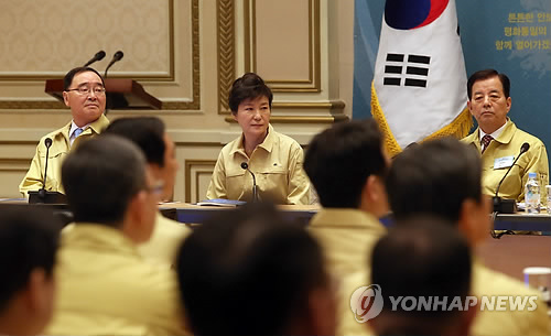 | △ 박근혜 대통령이 5일 오전 청와대 영빈관에서 열린 제48차 중앙통합방위회의에 참석, 회의를 주재하고 있다. |