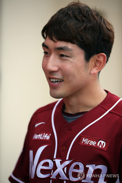 △ 밝게 웃는 넥센 서건창 (우루마<일본 오키나와현>=연합뉴스) 홍해인 기자 = 프로야구 넥센 히어로즈의 서건창이 23일 오후 일본 오키나와현 구시가와 구장에서 열린 실내 훈련을 마친 뒤 취재진과 인터뷰를 하고 있다. 넥센은 이날 SK와의 연습경기가 우천 취소되며 구시가와 구장에서 실내외 훈련을 가졌다. 2015.2.23 hihong@yna.co.kr