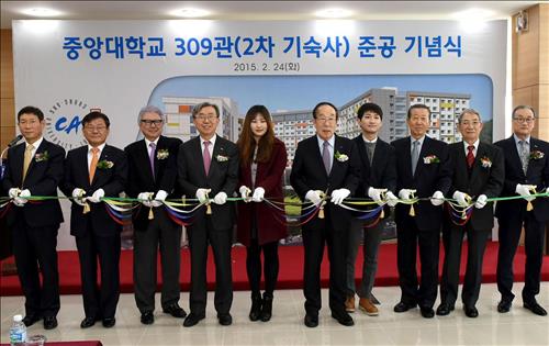 이날 오전 11시 중앙대 2차 기숙사 1층 로비에서 열린 준공식에는 박용성 중앙대 이사장, 이용구 중앙대 총장, 박진서 동창회장 등 100여 명이 참석했다.