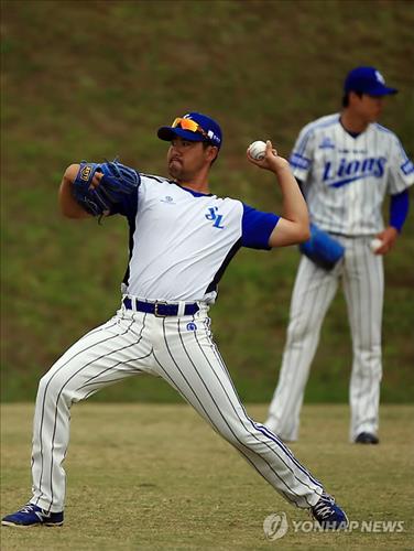 △ (온나<일본 오키나와현>=연합뉴스) 홍해인 기자 = 프로야구 삼성 라이온즈의 투수 장원삼이 24일 오전 일본 오키나와현 온나 아카마 구장에서 열리는 넥센과의 연습경기에 앞서 몸을 풀고 있다. 2015.2.24 hihong@yna.co.kr