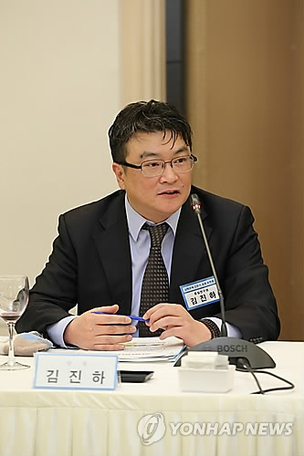 | △ 김진하 통일연구원 국제전략연구센터 소장이 25일 민주평화통일자문회의와 통일연구원이 프레스센터에서 연 전문가 토론회에서 발제를 하고 있다. |
