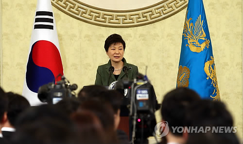 | △ 직원 조회서 인사말하는 박 대통령 (서울=연합뉴스) 도광환 기자 = 박근혜 대통령이 취임 2주년을 맞은 25일 오전 청와대 영빈관에서 열린 청와대 직원 조회에 참석, 인사말을 하고 있다. |