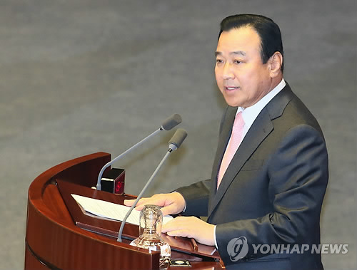 △ (서울=연합뉴스) 진성철 기자 = 이완구 신임 국무총리가 25일 국회 본회의장에서 인사말하고 있다.