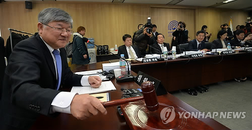 | △ 원안위 개회 (서울=연합뉴스) 신준희 기자 = 26일 오전 서울 광화문 원자력안전위원회 대회의실에서 열린 전체회의에서 이은철 위원장이 개회를 알리는 의사봉을 두드리고 있다. |