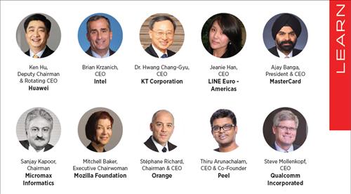 미국의 AT&T, 중국의 차이나모바일, 프랑스의 오랑쥐, 스페인의 텔레포니카, 영국의 보다폰 등 각국의 이동통신사 CEO들도 기조연설자로 참가해 5세대(5G) 이동통신 기술의 현황과 미래에 대해 논한다.