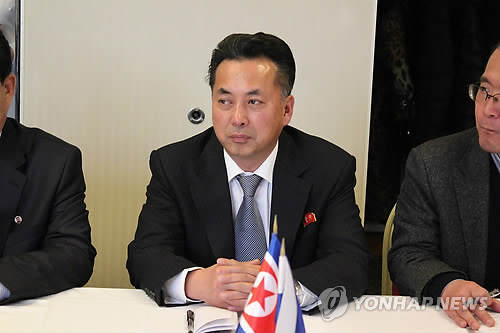 | △ '러-북 '비즈니스 협의회' 참석한 리용남 북한 무역상 (모스크바=연합뉴스) 유철종 특파원 = 러시아를 방문 중인 리용남 북한 무역상이 25일(현지시각) 모스크바 시내 아지무트 호텔에서 열린 러-북 '비즈니스 협의회' 1차 회의에 참석해 러시아 측의 설명을 듣고 있다. |