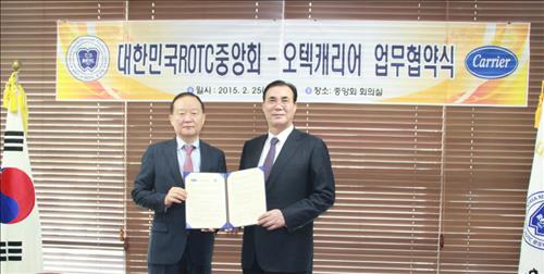 캐리어에어컨은 25일 오텍그룹 R&D센터에서 ROTC 중앙회와 복리후생 사업지원을 골자로 하는 업무협약을 맺었다고 26일 밝혔다.