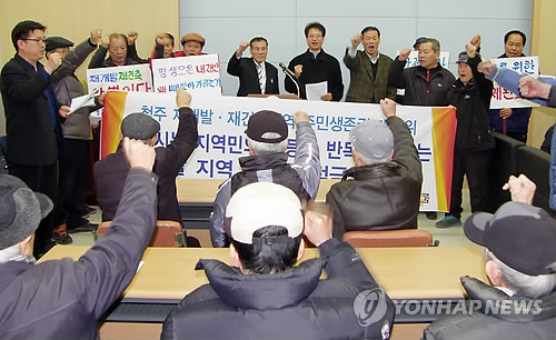 | △ "청주 재개발사업 출구 전략 마련하라" (청주=연합뉴스) 박재천 기자 = 청주 재개발·재건축 지역 주민생존권 대책위원회는 26일 청주시청 브리핑실에서 기자회견을 열어 "청주시의 규제 완화 정책은 재개발 지역 주거환경을 악화시키고, 원주민들에게 추가 분담금 폭탄을 안길 우려가 크므로 중단돼야 한다"고 강조했다. 대책위는 ▲ 정비구역 직권 해제를 위한 주민동의 비율을 도입해 경기도처럼 25%로 정할 것 ▲ 추진위원회 자진 해산 동의 비율을 50%에서 25%로 하향 조정할 것 등을 주장했다. 2015.2.26 jcpark@yna.co.kr SAMSUNG DIGITAL CAMERA |