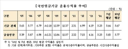 복지부는 "국내 주식 수익률은 2014년 초보다 코스피가 4.76% 하락하고 코스피200은 7.64% 하락함에 따른 것"이라고 설명했다.