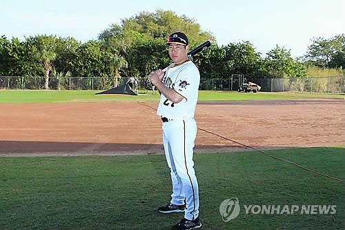 (브래든턴<미국 플로리다주>=연합뉴스) 장현구 특파원 = 미국프로야구 피츠버그 파이리츠에 입단한 '한국산 거포' 강정호(28)가 마침내 등번호 27번이 박힌 유니폼을 공개했다.