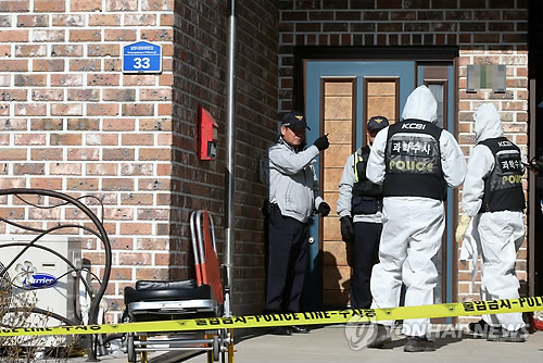 | △ 경기 화성 공기총 난사 사건 현장 (화성=연합뉴스) 신영근 기자 = 27일 오전 공기총 난사로 4명이 숨진 경기도 화성 사건 현장에서 경찰 관계자들이 조사를 벌이고 있다. |