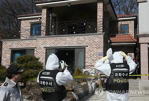 | △ 경기 화성 공기총 난사 사건 현장 (화성=연합뉴스) 신영근 기자 = 27일 오전 공기총 난사로 4명이 숨진 경기도 화성 사건 현장에서 경찰 관계자들이 조사를 벌이고 있다. 2015.2.27 drops@yna.co.kr http://blog.yonhapnews.co.kr/geenang |