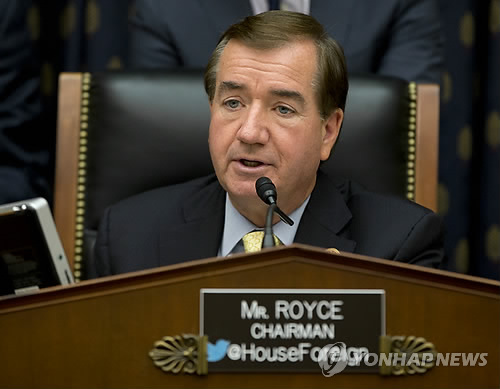 △ 미국 하원 외교위원회가 27일(현지시간) 전체회의에서 새로 상정된 대북제재 강화 법안(H.R. 757)을 만장일치로 하원 본회의에 상정하기로 결정했다. 이 법안을 발의한 에드 로이스(공화·캘리포니아) 미 하원 외교위원장 (AP=연합뉴스 자료사진)