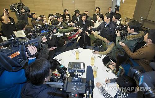 | △ 중앙대가 26일 서울 동작구 중앙대서울캠퍼스에서 2016학년도부터 학과제를 폐지하고 단과대학별로 신입생을 모집한다고 발표한 가운데 김누리(독어독문학과) 대학구조조정에 대한 교수 대표 비상대책위원회 회장이 간담회장으로 들어와 이번 개편이 교수, 학생들의 의견을 충분히 수렴하지 않은 '밀실 개편'이었다는 내용의 기자회견을 하고 있다. |