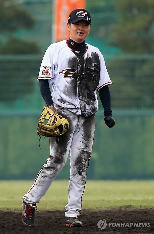 △ 한화 이창열 흙투성이 유니폼 (야에세<일본 오키나와현>=연합뉴스) 홍해인 기자 = 한화 이글스의 강훈련은 스프링캠프 내내 화제였다. 한화 내야수 이창열이 2월 28일 오후 스프링캠프가 차려진 일본 오키나와현 야에세의 고친다구장에서 가진 팀 플레이 훈련에서 슬라이딩 수비 후 홈을 바라보고 있다. hihong@yna.co.kr
