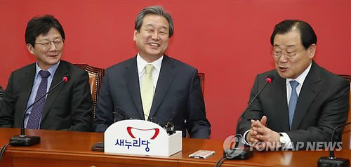 그러자 김 대표는 과거 이회창 전 대표의 대선 캠프와 박근혜 대통령의 2007년 대선후보 경선 캠프에서 이 실장, 유 원내대표와 함께 일했던 사실을 언급, "장고 끝 악수 둔다는 말이 있는데 이번엔 장고 끝에 아주 홈런을 쳐서 우리 마음이 푸근하다"고 말했다.