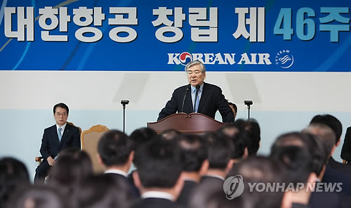 (서울=연합뉴스) 김윤구 기자 = 조양호 한진그룹 회장이 3일 대한항공[003490] 창립 46주년을 맞아 내실을 다지고 혁신할 것을 강조했다.