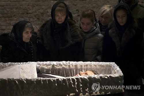 △ 넴초프여 암살없는 나라로… (AP=연합뉴스) 총격 피살된 러시아 야권 지도자 보리스 넴초프의 장례식이 열리고 있는 3일(현지시간) 모스크바의 사하로프 센터에서, 가족·친지들이 관에 안치된 넴초프의 시신을 보며 마지막 인사를 하고 있다.