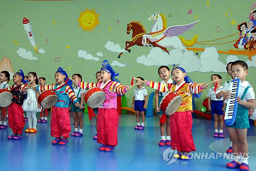 △ 공연 펼치는 평양육아원 원아들 (평양 조선중앙통신=연합뉴스) 22일 평양육아원에서 한복 차림의 원아들이 공연을 펼치고 있다. 조선중앙통신은 북한 김일성 전 주석의 부인 김정숙의 97번째 생일을 이틀 앞두고 이날 북한 주재 대사관, 국제기구대표부 여성들이 평양육아원과 애육원을 참관했다고 보도했다. 2014.12.22 photo@yna.co.kr