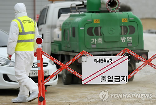 이 농장은 지난달 25일 구제역 확진 판정을 받은 돼지 농장과 580여m 떨어져 있다.