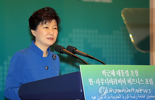 (리야드=연합뉴스) 정윤섭 박성민 기자 = 중동 4개국을 순방 중인 박근혜 대통령은 4일 오전(한국시간) 사우디아라비아에서 열린 한-사우디 비즈니스 포럼에 참석, 양국 경제협력 관계를 서비스산업과 공동투자 등으로 다각화할 것을 제안했다.