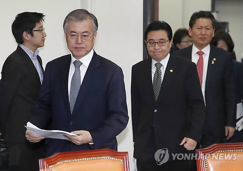 | △ 최고위원회의 참석하는 문재인 대표 (서울=연합뉴스) 이상학 기자 = 새정치민주연합 문재인 대표가 6일 오전 국회에서 열린 최고위원회의에 참석하고 있다. |