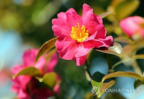 △ 부산 해운대구 동백섬에 활짝 핀 동백꽃 모습.<연합뉴스 자료사진>