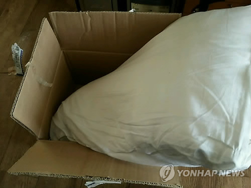 | △ 휴대전화 대신 배달된 베개 (의정부=연합뉴스) 경기 의정부경찰서는 6일 인터넷 중고 물품 거래를 하며 상습적으로 돈만 받고 물건을 보내주지 않은 20대 상습 사기범을 구속했다. 사진은 피의자가 보내주기로 한 휴대전화 대신 배달된 베개의 모습을 피해자가 촬영한 것.2015.3.6<<의정부경찰서>> jhch793@yna.co.kr |