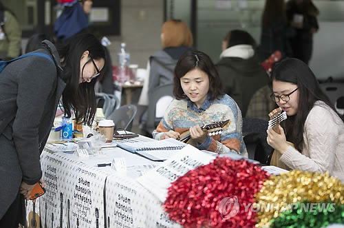 △ '동아리 활동 기대됩니다' (서울=연합뉴스) 윤동진 기자 = 전국 대부분 대학 개강일인 2일 서울 서대문구 이화여자대학교 학생문화관에서 열린 '동아리 박람회'에서 학생들이 신입생들을 모집하기 위해 열띤 홍보를 하고 있다. 2015.3.2 mon@yna.co.kr