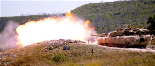 M1A2 에이브러햄 탱크와 M2A1 브래들리 장갑차의 포신에서는 고막을 찢는 듯한 '쾅'하는 폭발음과 함께 연방 불을 뿜고 있었다.
