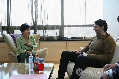 | △ 리퍼트 대사 병문안 하는 박 대통령 (서울=연합뉴스) 박근혜 대통령이 9일 오전 서울 세브란스병원에서 리퍼트 주한 미국대사의 병실을 방문해 위로하고 있다. (청와대 제공) |