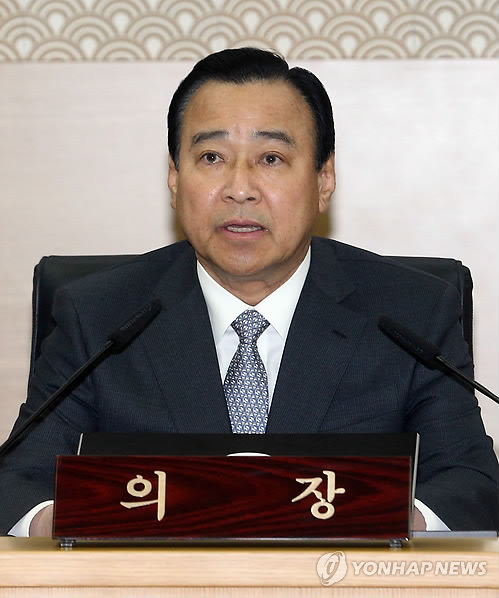 △ 이완구 총리, 세종청사에서 국무회의 주재 (세종=연합뉴스) 배재만 기자 = 이완구 국무총리가 10일 오전 정부세종청사 영상국무회의장에서 세종-서울 청사 간 영상 국무회의를 주재하고 있다.
