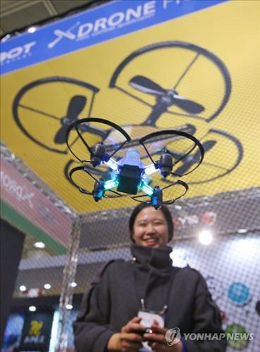 | △ 당초 군사·촬영 등에 쓰이던 무선 조종 비행체 드론(Drone)의 용도가 '취미용'으로까지 넓어지면서, 최근 30~40대 남성을 중심으로 드론 수요가 크게 늘고 있다. 사진은 2014년 11월 서울 강남구 코엑스에서 열린 2014 창조경제박람회장에서 한 업체 관계자가 소형 드론 조종을 시연하는 모습. |