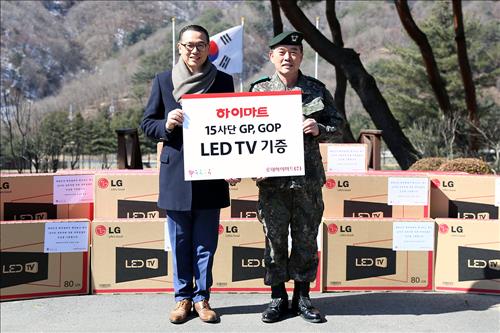 하이마트는 이날 육군 15사단의 GP(비무장지대 소초)와 GOP(일반 전초)에 총 24대의 LED(발광다이오드) TV와 위문품을 전달했다.