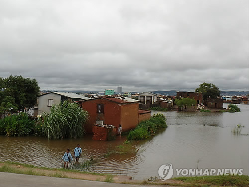 | △ 석달째 폭우 내린 마다가스카르 (요하네스버그=연합뉴스) 류일형 특파원 = 3개월째 폭우가 계속되고 있는 아프리카 최대 섬나라 마다가스카르. 물 속에 잠겼던 집이 벽돌이 허물어진 채 모습을 드러냈다. 어린이들이 무릎까지 물이 찬 집 앞 골목길을 걸어 나오고 있다. 2015.3.11 << 김창주 선교사 제공 >> photo@yna.co.kr |
