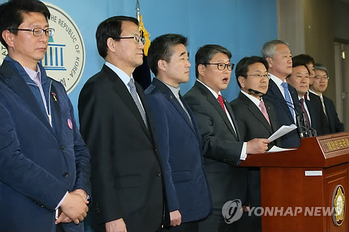 | △ 공무원연금 대타협기구 "연금개혁 필요한 상황 공감" (서울=연합뉴스) 진성철 기자 = 조원진, 강기정 공동위원장 등 위원들이 10일 국회 정론관에서 공무원연금 개혁을 위한 국민대타협기구의 중간합의문을 발표하고 있다. |