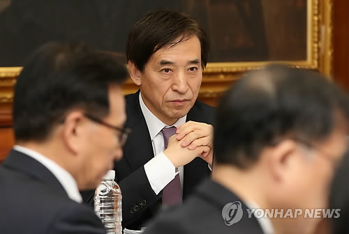 △ 생각에 잠긴 이주열 한국은행 총재 (서울=연합뉴스) 서명곤 기자 = 이주열 한국은행 총재가 12일 오전 서울 중구 남대문로 한국은행 본점에서 열린 금융통화위원회 회의에서 생각에 잠겨있다. 2015.3.12 seephoto@yna.co.kr