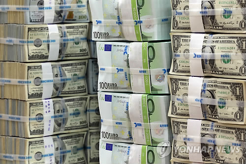 | △ '유로=달러' 등가까지 얼마나.. (서울=연합뉴스) 신준희 기자 = 유로가 달러화에 대해 근 12년래 최저치로 추락하면서 달러와 등가를 이룰 것이라는 전망이 앞당겨지고 있다. 10일(미국시간) 유로화는 달러화에 대해 1.0691달러까지 하락했으며, 이는 2003년 4월 이후 최저치다. 유럽중앙은행(ECB)의 국채 매입 프로그램과 미국의 금리 인상 전망 등으로 유로는 올초 이후 달러에 대해 12%가량 하락했다. 유럽 투자자들이 자산을 해외 시장, 특히 미국과 영국, 캐나다 등으로 이동시킬 것으로 전망됨에 따라 올해 말 유로가 달러와 등가를 이룰 것이라는 예측도 나온다. 사진은 11일 오후 서울 명동 외환은행 본점에서 촬영한 유로와 달러. 2015.3.11 hama@yna.co.kr |