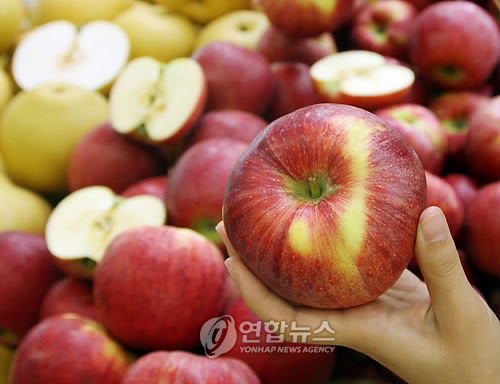 14일 농림축산식품부와 한국농수산식품유통공사(aT) 등에 따르면 사과의 도매가격은 지난 12일 현재 15㎏ 상품 1상자가 6만2천400원으로 1년 전(8만6천800원)보다 28.1%나 하락했다.