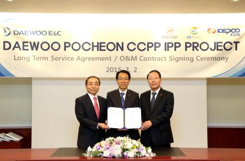 GS파워는 지난 2일 자사 손영기 사장과 하익한 대우건설 발전사업 본부장, 최외근 한전 KPS 사장 등이 참석한 가운데 대우포천발전소 유지보수(O&M) 및 장기서비스계약(LTSA)을 체결했다고 16일 밝혔다.