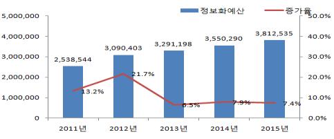 미래창조과학부와 행정자치부는 국가기관을 포함한 공공부문 2천173개 기관 중 2천148곳을 대상으로 '2015년 공공부문 SW·ICT장비 수요예보(확정) 조사'를 한 결과, 올해 이들 기관의 SW·ICT장비 사업 규모는 3조8천125억원으로, 작년보다 7.4%(2천622억원) 증가한 것으로 집계됐다고 16일 밝혔다.