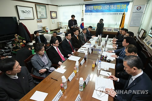 | △ 중소기업중앙회-소상공인·전통시장 현장 간담회 (서울=연합뉴스) 박지호 기자 = 17일 오전 서울 청계천로 한국산업용재협회에서 '중소기업중앙회-소상공인·전통시장 현장 간담회'가 열리고 있다. |