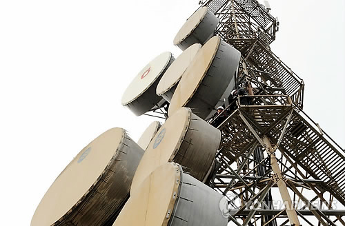 △ KT, 백령도에도 기가 아일랜드 구축 (서울=연합뉴스) 전성훈 기자 = KT는 17일 인천광역시 옹진군 백령도 현지에서 인천시와 함께 '백령 기가 아일랜드' 선포식을 했다. 사진은 기가 아일랜드 구축에 활용된 마이크로웨이브 무선통신탑. 2015.3.17 << KT 제공 >> lucho@yna.co.kr