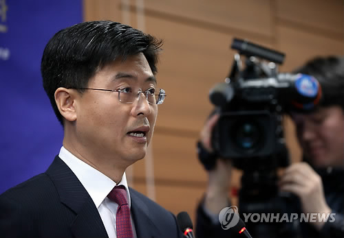 | △ 원전도면 유출 북한 해커조직 소행 (서울=연합뉴스) 박동주 기자 = 최윤수 3차장검사가 17일 오후 서울 고등검찰청에서 한수원 사이버테러 사건 중간수사 결과를 발표하고 있다. |